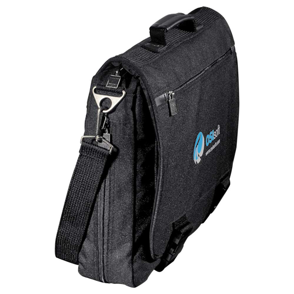 Deluxe organizer for phones, business accessories and files. Smooth plastic snap closure on flap. Detachable, adjustable shoulder strap.