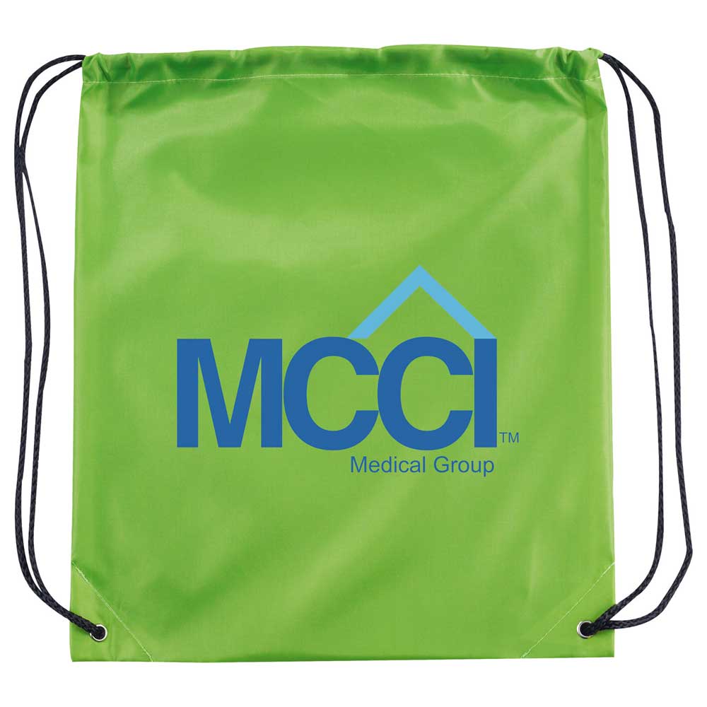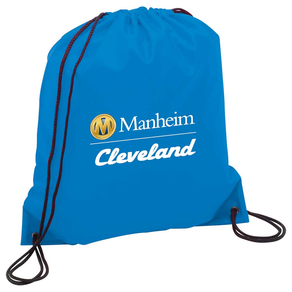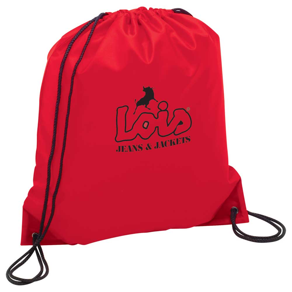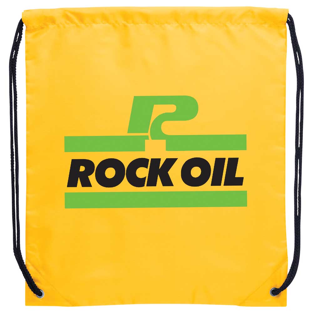 The Oriole Drawstring Bag includes an open main compartment with a cinching rope closure and reinforced bottom corner tabs.