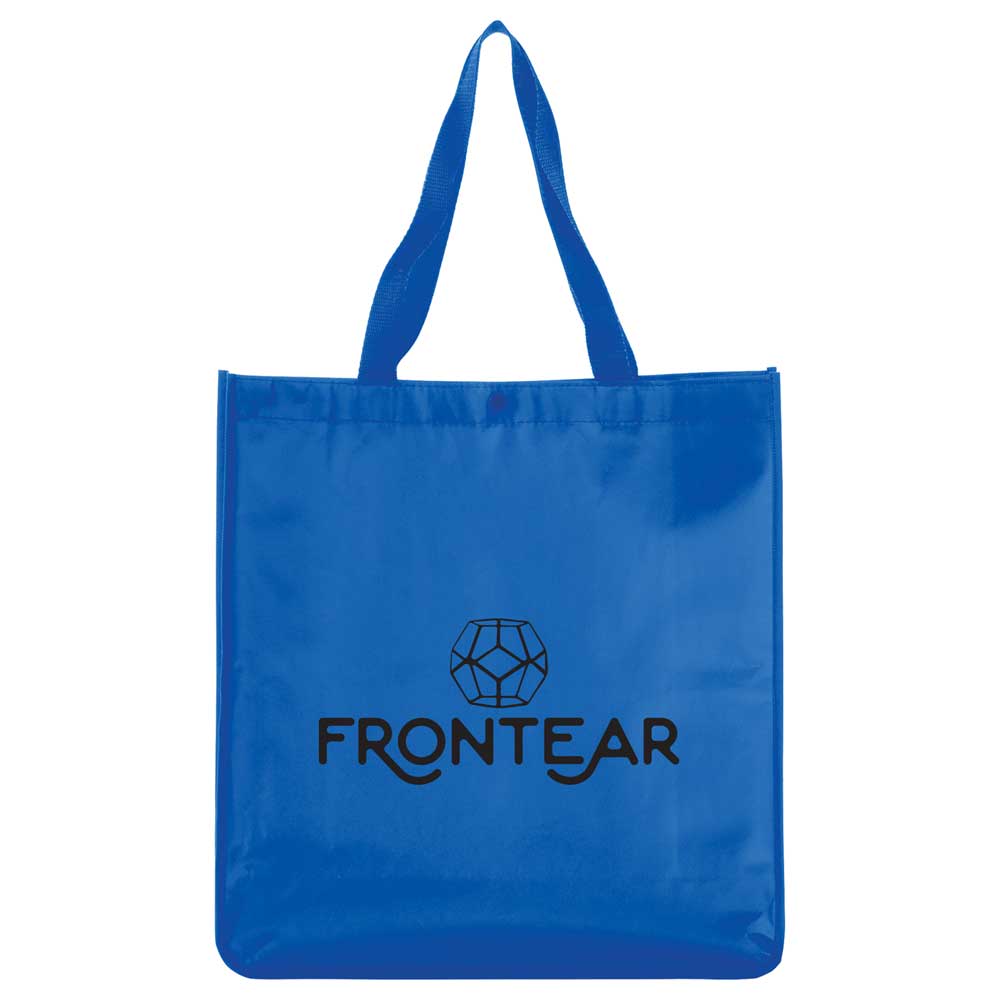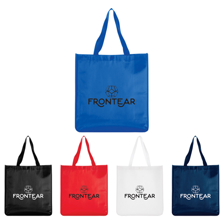Perfect alternative to plastic bags. Open main compartment with snap closure. Laminated material is water-resistant and easily wipes clean. 10.5″ drop handles.