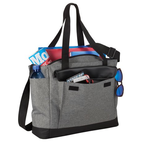 Large zippered main compartment. Large main compartment which can hold all of you everyday work essentials and tech accessories. Easy access front pocket with vinyl hook and loop pocket. Adjustable shoulder strap and two grab handles. Disclaimer: There may be minor variations in color of the actual product due to the nature of the fabric dyes, weaves and printing.