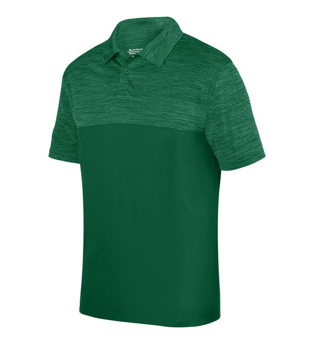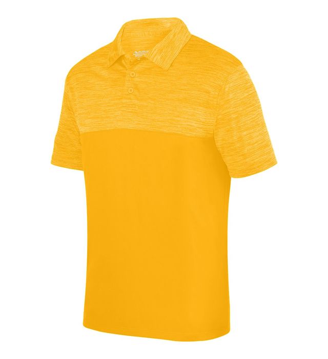 4.3 ounce 100% polyester heathered wicking knit top body, collar and sleeves.