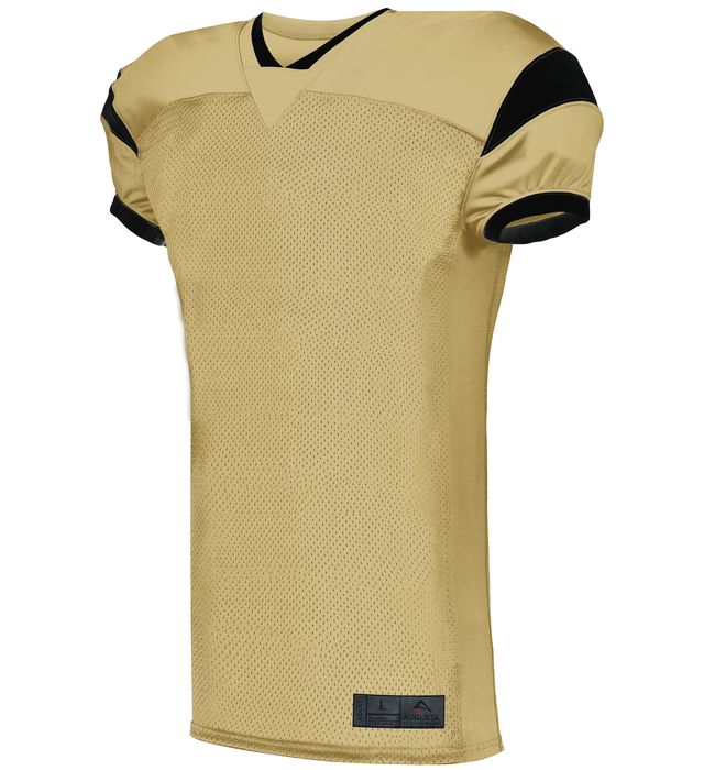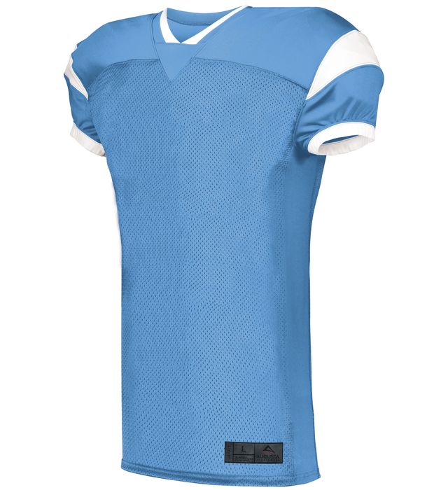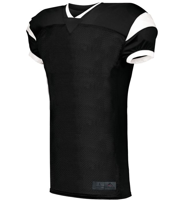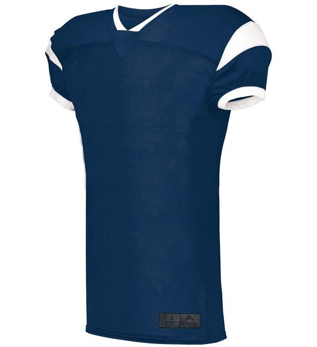 Take your game to the next level with the Slant Football Jersey. This jersey features an updated fit to accommodate traditional and slimmer pads, as well as a two-color V-neck collar with center front insert and color block sleeves. Simple, yet on-trend, these details give a high-end look to this budget-friendly option.