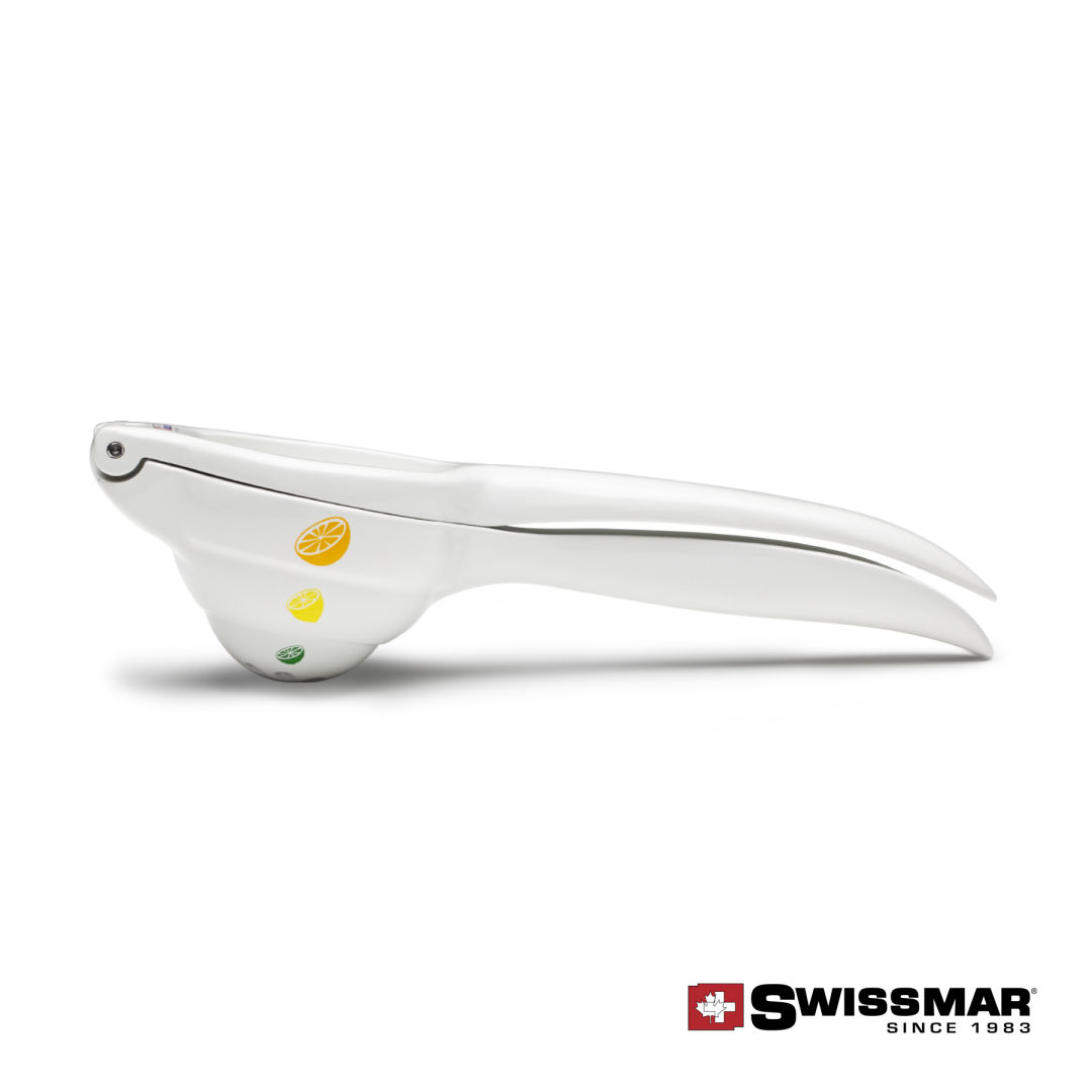 The Lustro Citrus Squeezer easily extracts juices from lemons and limes with minimal pressure. Just open up the squeezer and then place the cut lemon or lime upside down on the cone. When you press the squeezer together, the rind will turn inside out, extracting the maximum amount of juice. Quick and easy! Aluminum with non-stick coating