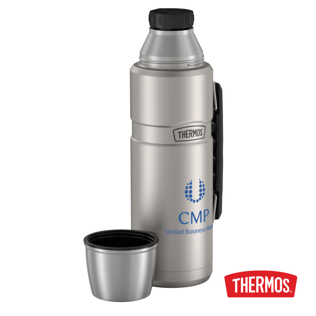 This Stainless King™ 1.2L (40oz) Beverage Bottle is the perfect take-along for family camping and outdoor enthusiasts. The handy serving cup doubles as a lid. The twist and pour stopper feature means easy pouring and a tight seal. Not only will it keep your favorite beverages hot or cold for 24 hours, but 40oz of volume means serving the whole family is a breeze.