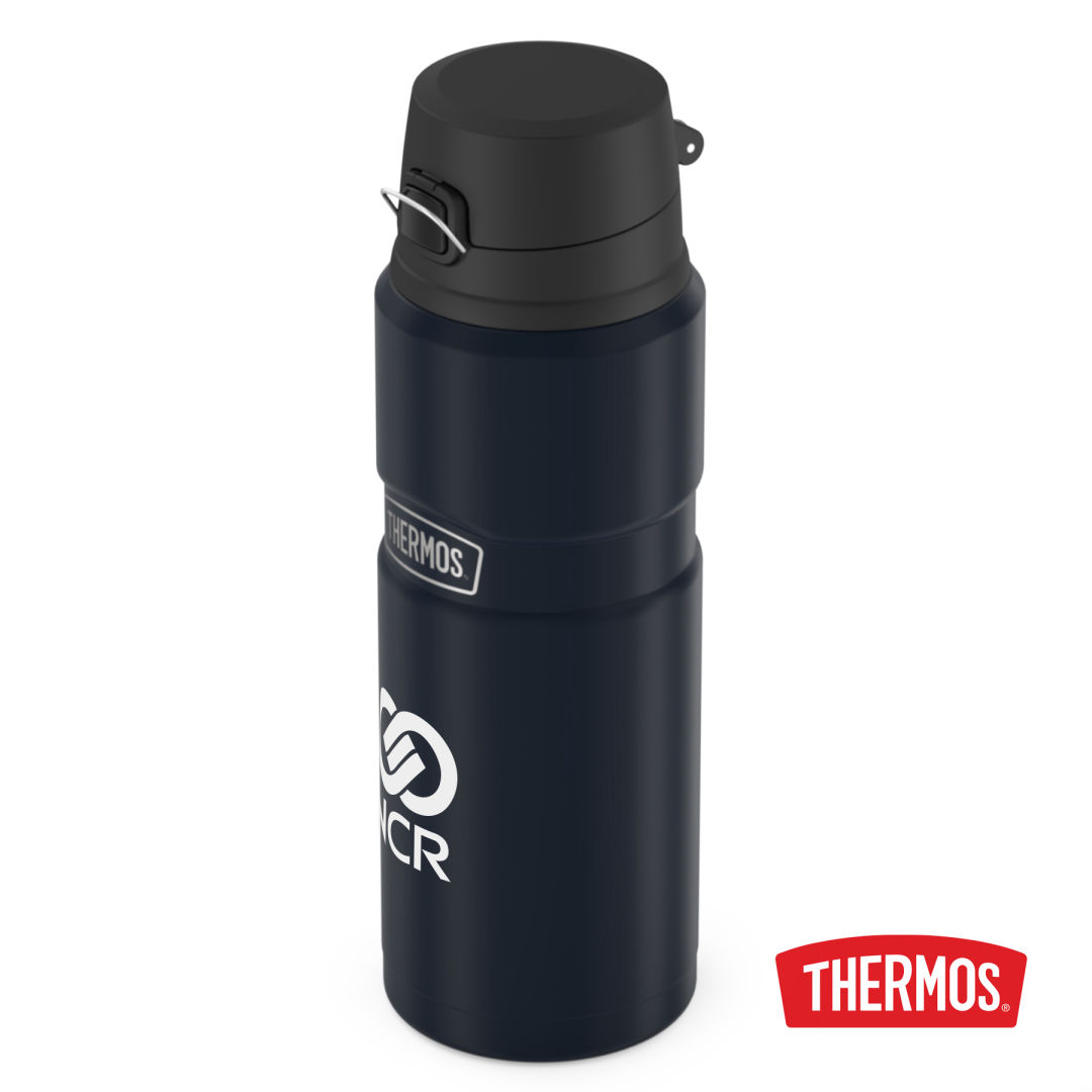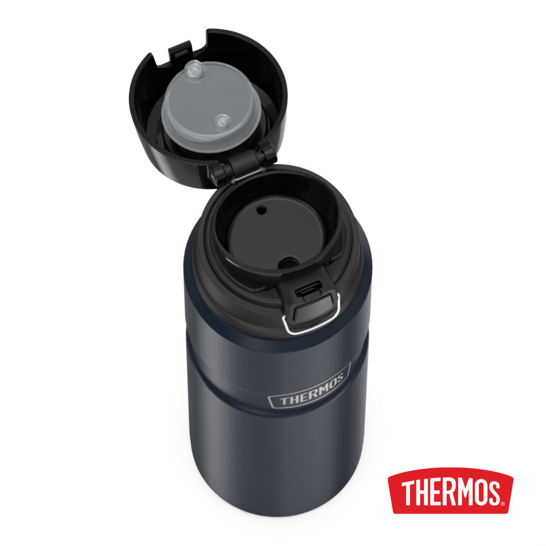 This Stainless King™ 24oz Drink Bottle is the perfect take-along for family camping and outdoor enthusiasts. Double wall stainless steel construction and Thermos™ vacuum insulation technology keeps your favorite drinks hot for 18 hours or cold for an impressive 24 hours, making it ideal for an overnight or weekend nature trip. The smooth flow lid helps control the flow of liquids. The lid also has a push-button with a locking ring that helps stay leak-proof when locked closed.