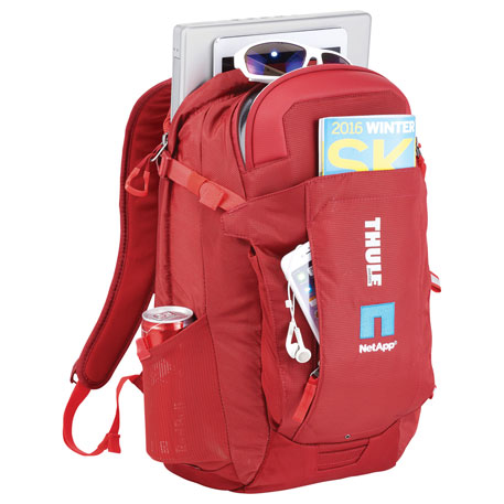 The Thule® EnRoute Triumph 2 15″ Computer Backpack is a 21 Liter pack with SafeEdge™ laptop protection and compartments for essential daily gear. The bag fits a 15″ MacBook Pro®/14″ PC plus a tablet. The SafeEdge™ construction laptop sleeve ensures corner protection for all electronics. Crushproof SafeZone™ compartment for sunglasses, smartphone like an iPhone and other fragile gear. Expandable drop pocket offers quick access storage. Laptop compartment doubles as storage for a hydration reservoir (reservoir not included). Quick-access pocket on front flap. Features hideaway lash points with reflective detail. Organizational panel keeps small items secure and easy to locate. Airflow channels on back panel provide ventilation. Padded daypack straps with sternum strap maximize comfort. Free run charges for embroidery up to 7500 stitches.