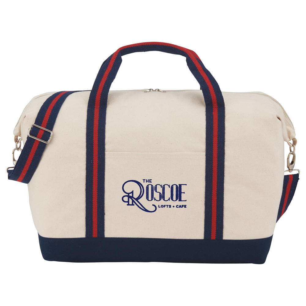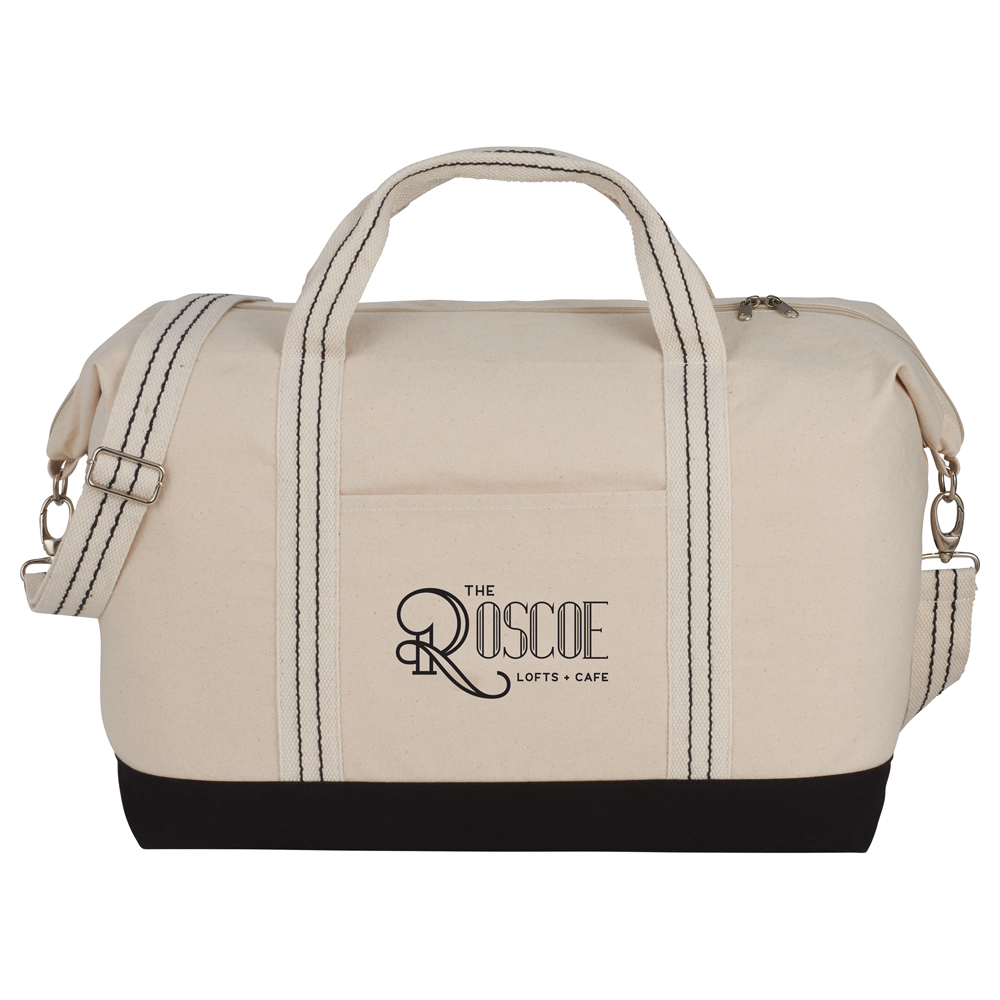 The Top Sail 12oz Cotton Canvas Duffel features a zippered main compartment and a removable, adjustable shoulder strap. This durable cotton tote makes the perfect gym or weekend getaway companion.