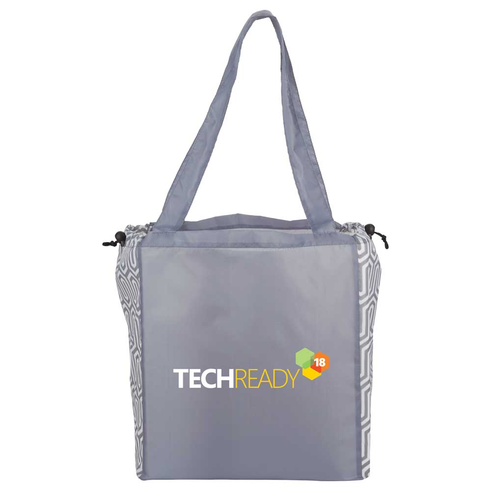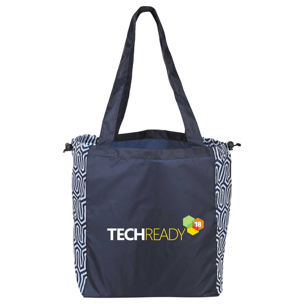 TRENZ offers a new and fashionable grocery or carry-all tote. Fun, trendy patterns are offered on the gussets of the open main compartment. These gussets have cinch closures which allow all of your items to sit securely in your tote while providing a functional and fashionable twist. Machine washable. Water resistant material. Packable and lightweight material.