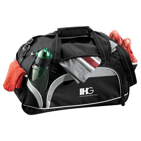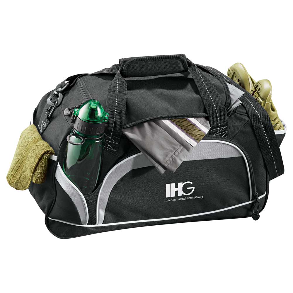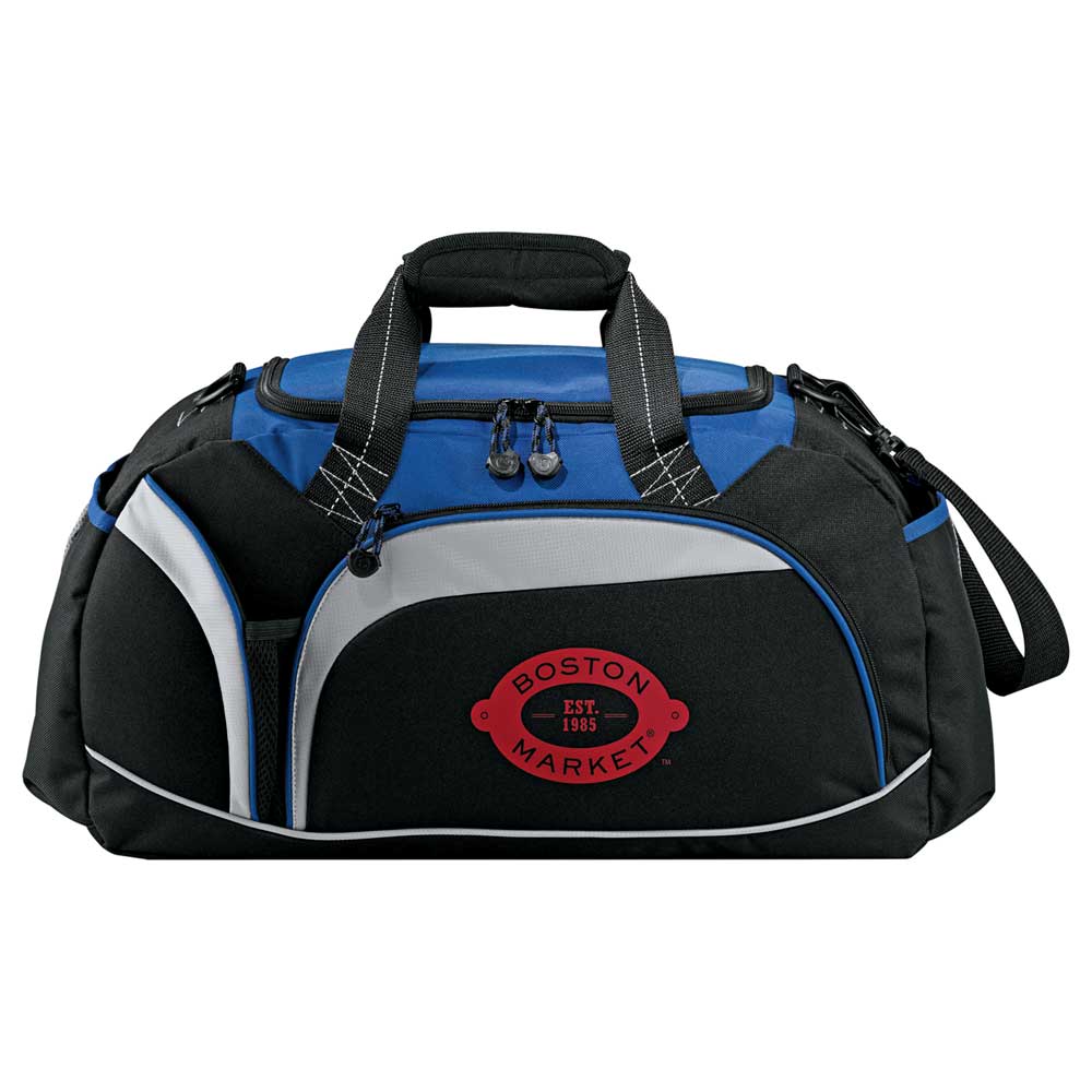 Large zippered main compartment. Front zippered pocket. Front water bottle pocket. Two side accessory pockets. Detachable, adjustable shoulder strap.