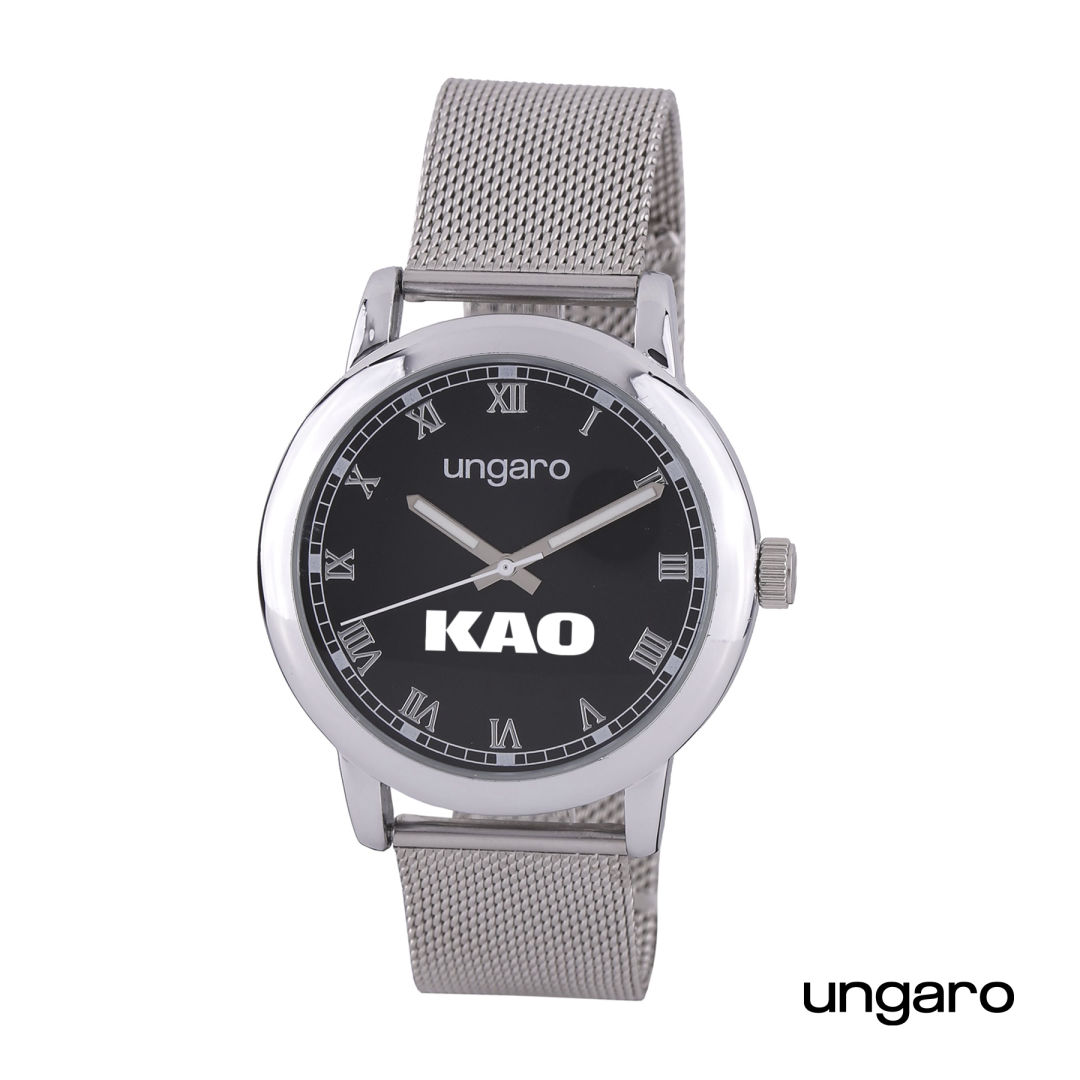 The “Primo” watch is thoroughly on trend, although its case design has a slightly retro feel. Its dashing crisp metal mesh strap in black finishes contrasts with the white dial for a distinctive allure. This dater watch is 3 ATM water and has a precise movement.