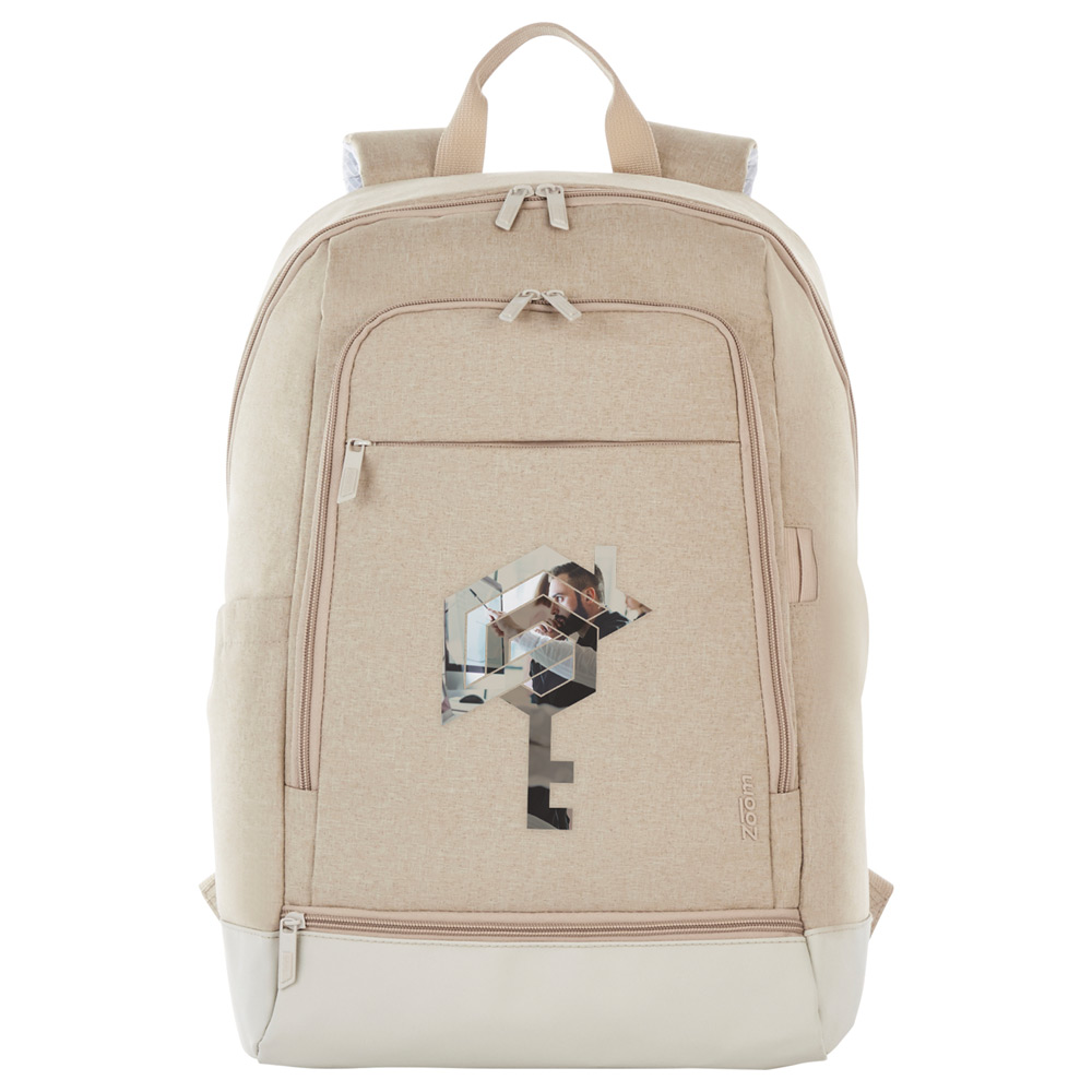The Zoom® Dia 15″ Computer Backpack works to provide you the accessories you need for the technology you use every day. Offered in the hottest colorways with gray/silver accents, signature Zoom lining and cord pass through. Main compartment comes with a laptop pocket that holds up to a 15.6 inch laptop, a mesh pocket and two additional pockets for a power bank or phone. Padded back and shoulder straps with trolley sleeve. Zoom® branding and accents.
