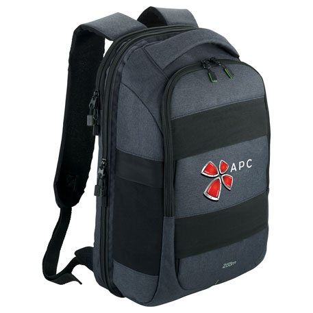 The Zoom® Power Stretch TSA 15″ Computer Backpack is the solution for those that stretch the limits of mobile tech. This is the ultimate travel bag for the tech savvy. Checkpoint-Friendly compartment features a padded laptop sleeve that fits up to 15.6 inch computers. Outside of the bag features two elastic pockets, one that fits your iPad®/tablet and the other for your power cords or any other tech. Stretch mesh pockets on the sides for quick access to all your other mobile devices. Large main compartment features dedicated neoprene pocket for mobile power that will fit all of our Zoom™ Power devices and most aftermarket power solutions (not included). The smart organization inside the bag lets you power the devices while in the bag by providing ports to the front organizer pocket as well as the side pocket. Allows you to charge your power block without having to remove it from the bag. Rear adjustable straps with stretch phone pocket and trolley pass-through.
